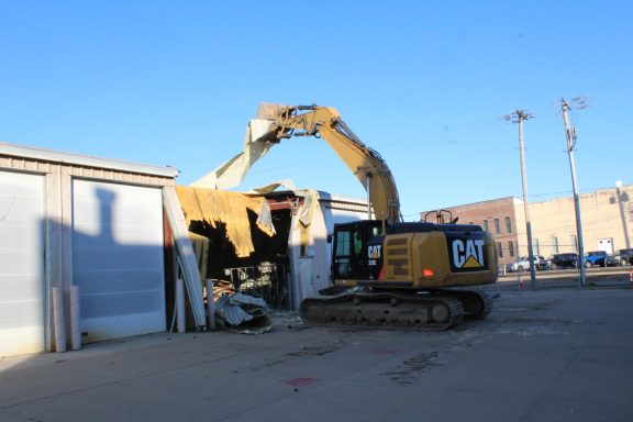 Workers with Midwest Demolition Contractors, Inc., demolish the former Citywide Cleaners, 838 First Ave. NE, in Cedar Rapids on Wednesday. The company is also demolishing buildings at 834 and 836 First Ave. NE. Those buildings most recently housed Mamacitas Taco Pub and La Casita Breakfast Cafe, respectively. UnityPoint Health purchased the three buildings as well as a building in the 800 block of A Avenue NE. The hospital plans to use the space to expand its valet service and general parking capacity for its Medical Office Plaza. (Jim Slosiarek/The Gazette)